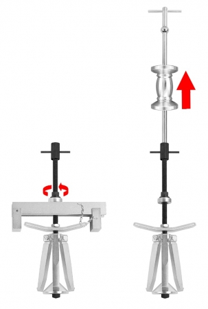 - Next, bridge is removed and slide hammer assembly is attached.