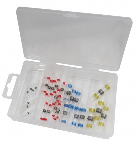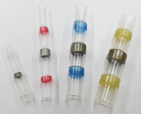 What are Solder Splice Connectors? A waterproof seal is created easily by placing stripped wires into the solder sleeve and applying heat. Dual-walled heat shrink tubing with hot-melt adhesive prevents wire corrosion, and you will never have to worry about water damage. For easy identification, the connectors are color-coded along with a handy wire size chart located on the box. Connectors comply with ROHS standards. Solder seal wire connectors work excellently in limited-space areas, as solder and seal electrical terminals do not need crimping. ![]() |