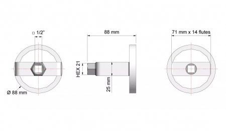 - Size 71 mm x 14 flutes x 1/2" square drive.