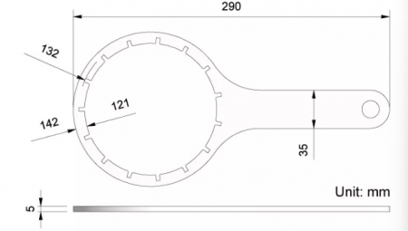 - Ø121mm with 15 grooves, total length of 290 mm.