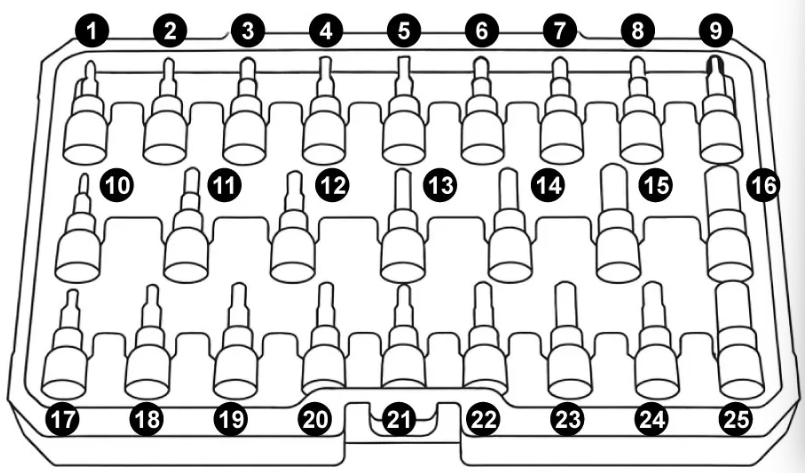 - The compact blow-molded case keeps all 25 pieces organized, while color bands on the sockets make it easy to identify sizes at a glance.