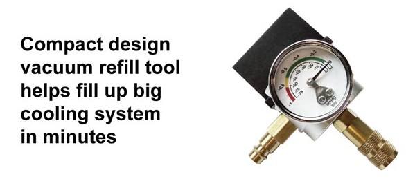 - Provided with an air pressure device for fast pressurizing on large capacity cooling systems.