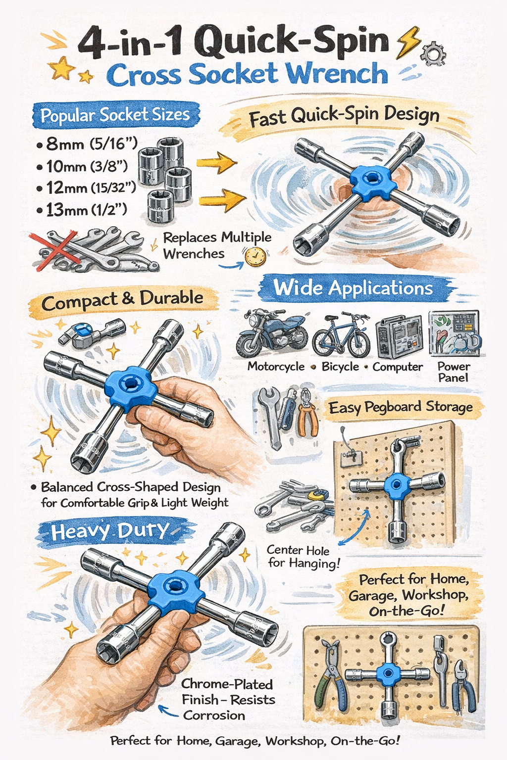 4-in-1 Quick-Spin Cross Socket Wrench